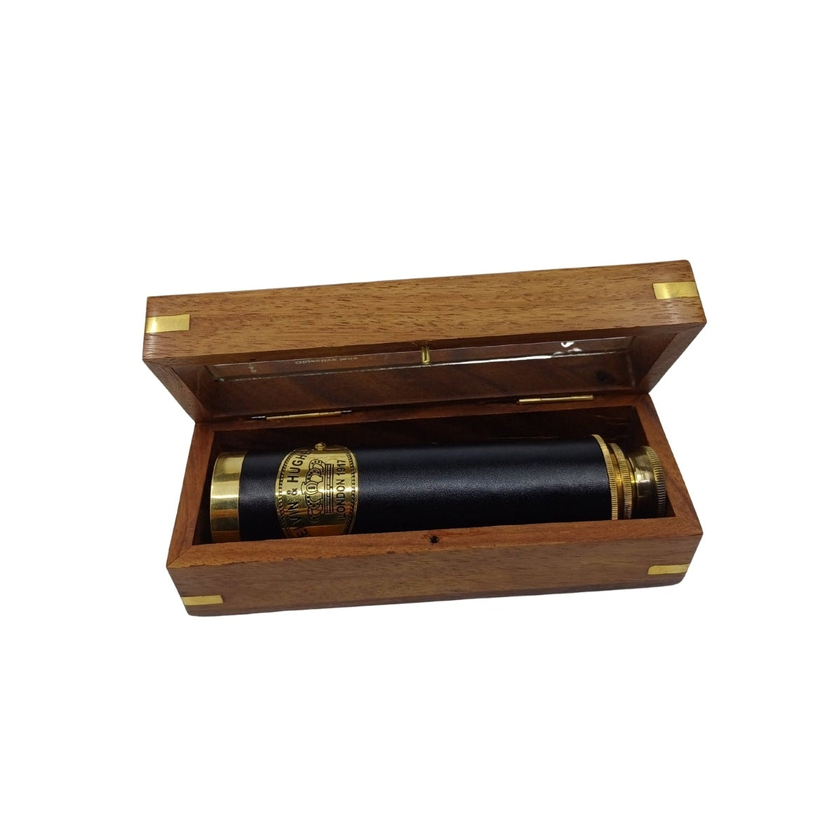 Kelvin & Hughes London 1917 damgalı bu tekli denizci dürbün, keşif çağlarının estetiğini taşıyan koleksiyonluk bir masa objesidir. %100 pirinçten imal edilen gövdesi ve özel yapım ahşap kutusuyla hem şık bir dekoratif obje hem de nostaljik bir hatıra niteliği taşır.