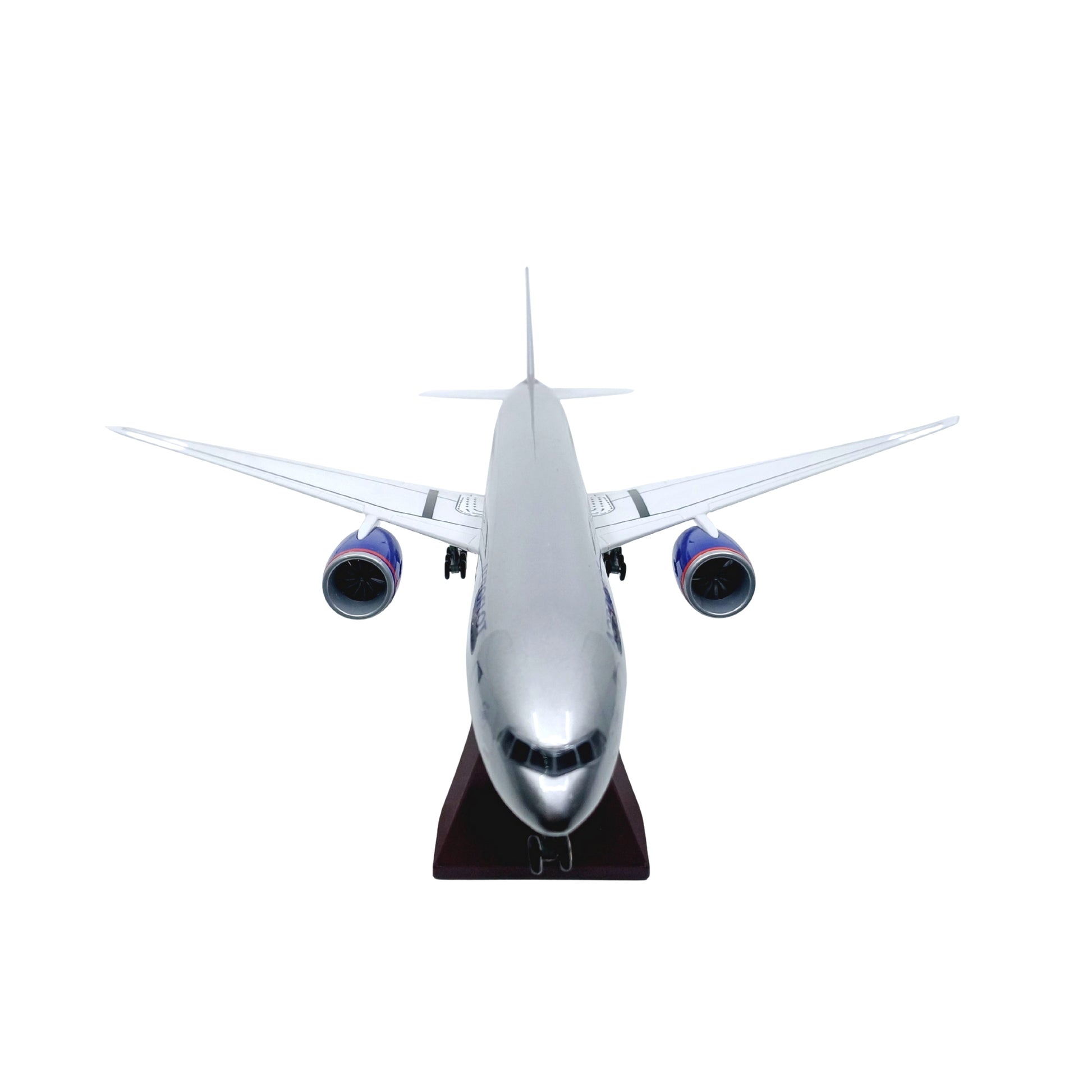 Rusya’nın ulusal havayolu Aeroflot filosunun en modern ve güçlü modellerinden Boeing 777, bu 1/157 ölçekli ve 47 cm uzunluğundaki makette hayat buluyor. Gri-mavi gövde üzerine işlenmiş kırmızı ve mavi çizgiler ile Aeroflot’un karakteristik logosunu taşıyan bu model, havacılık koleksiyonlarına güçlü bir katkı sağlar. Modern ofis dekorasyonlarında, vitrinlerde ve seyahat temalı alanlarda etkileyici bir obje olarak öne çıkar.
