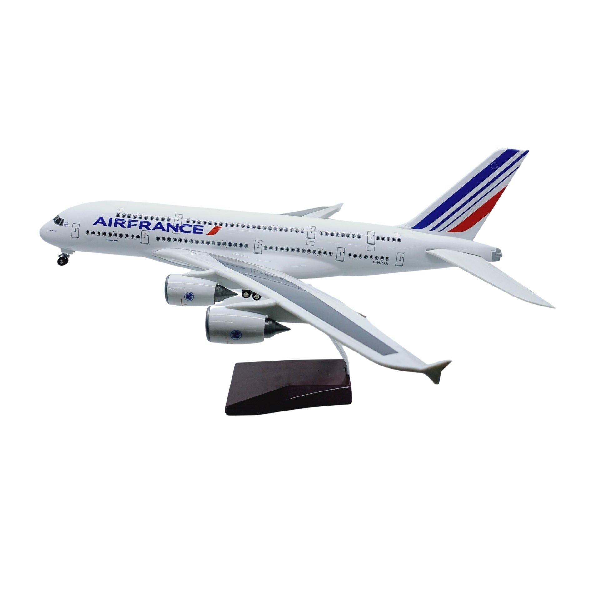 Fransa’nın bayrak taşıyıcı havayolu Air France filosunun en prestijli uçaklarından Boeing 777, bu 1/157 ölçekli ve 47 cm uzunluğundaki model uçakta yeniden hayat buluyor. Beyaz gövde üzerinde lacivert Air France yazısı ve kuyruktaki kırmızı-lacivert çizgilerle süslenen tasarımı, hem koleksiyon hem de dekoratif amaçlarla büyük değer taşır. Ofis, vitrin ve seyahat temalı dekorasyonlarda zarif bir obje olarak öne çıkar.